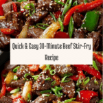 This 30-minute beef stir-fry delivers sweet, savory, and sticky flavors with tender flank steak and crisp mixed vegetables. The beef is seared to caramelized perfection and combined with a rich, glossy sauce served over fluffy rice—perfect for a quick and satisfying weeknight dinner.