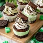 These Andes Creme de Menthe Two Bite Minty Cheesecakes are a delightful no-bake treat perfect for mint lovers. Miniature and rich, they combine creamy cheesecake with refreshing mint chocolate in each bite-sized portion. Ideal for parties or an elegant dessert.