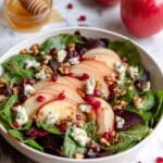 This Apple, Blue Cheese & Pomegranate Salad is a vibrant mix of sweet, tangy, and savory flavors. Crisp apples, juicy pomegranate arils, and creamy blue cheese come together with toasted walnuts and a zesty dressing for a refreshing and elegant dish perfect for any season.