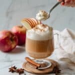 - Add toppings and serve: Sprinkle ground cinnamon or apple pie spice on top, drizzle caramel sauce, and add a dollop of whipped cream if desired. Serve immediately with a spoon and a straw for the perfect float experience.