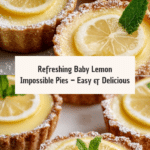 These Baby Lemon Impossible Pies are delightful, tangy mini treats perfect for impressing your guests. With a light, fluffy texture featuring fresh lemon juice and zest, these easy-to-make pies bake into individual portions that balance sweetness with citrus brightness. Great for parties, brunches, or as a refreshing dessert, these pies use basic pantry ingredients and come together quickly for a crowd-pleasing lemon dessert.