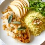 This Baked Chicken with Apples and Honey recipe offers a delightful balance of savory and sweet flavors. Tender chicken breasts are seared to golden perfection, then baked with tart Granny Smith apples, fragrant herbs, and a touch of honey for a comforting, wholesome meal that’s perfect for any night of the week.