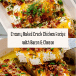Keywords: Baked Crack Chicken, crispy bacon chicken, creamy chicken breast, cheddar cheese chicken, easy baked chicken recipe, smoky chicken dish