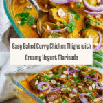 This Baked Curry Chicken is a flavorful and easy-to-make dish perfect for a weeknight dinner. Tender chicken thighs marinated in a creamy yogurt and curry spice blend, then baked to perfection. It’s delicious on its own or served with rice or naan.
