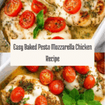 Baked Pesto Mozzarella Chicken is a flavorful and easy-to-make dish perfect for busy weeknights. With tender chicken breasts topped with fresh pesto, melted mozzarella, and juicy cherry tomatoes, this recipe combines simple ingredients into a comforting meal.
