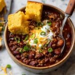 - Serve: Ladle the chili into bowls and garnish with your favorite toppings such as shredded cheese, sour cream, chopped onions, or cilantro. Enjoy warm.