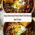 This Best Ground Beef Stovetop Chili is a hearty, flavorful dish perfect for cozy meals. Featuring rich ground beef, a blend of spices, tomatoes, and beans, this chili simmers to perfection on the stovetop, delivering a deliciously thick and aromatic result. It’s easy to prepare, customizable for heat preference, and great for family dinners or meal prepping.