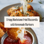 Blackstone Fried Mozzarella is a crispy, golden appetizer perfect for any occasion. With a crunchy panko coating and gooey melted cheese inside, it’s an irresistible treat served alongside a rich homemade marinara sauce.