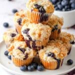 Keywords: blueberry muffins, cheesecake muffins, blueberry cheesecake, crumble topping, breakfast muffins, homemade muffins, sweet muffins