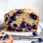 Coating the blueberries with a tablespoon of dry pancake mix before folding them into the batter helps keep them suspended evenly throughout the bread.