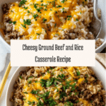 This Cheesy Ground Beef and Rice Casserole is a comforting and easy-to-make dish perfect for weeknight dinners. Featuring savory ground beef, creamy mushroom soup, and melted cheddar cheese, it’s a hearty meal that combines simple ingredients for a satisfying bake. The casserole is topped with bubbly, golden cheese and optionally garnished with fresh parsley for extra flavor and color.