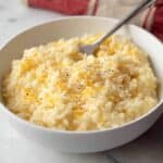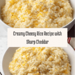 Keywords: cheesy rice, cheesy side dish, creamy rice, cheddar rice, stovetop rice, easy rice recipe