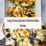 Keywords: Cheesy spinach chicken bake, baked chicken recipe, creamy chicken casserole, spinach and cheese chicken, easy chicken bake