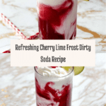 Keywords: Cherry Lime Frost Dirty Soda, cherry soda recipe, creamy soda, refreshing summer drink, maraschino cherry drink, lime soda, no-cook beverage