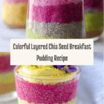 This vibrant Chia Seed Breakfast Pudding features five delicious flavors layered in glasses for a nutritious and visually stunning start to your day. Made with almond milk, chia seeds, fresh fruits, and natural sweeteners like agave, it includes chocolate, mango, wheatgrass, avocado, and dragon fruit puddings. Prepared by blending and chilling until set, this pudding is a wholesome, plant-based breakfast perfect for a refreshing and energy-boosting morning meal.