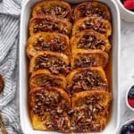 Keywords: Cinnamon French Toast Bake, breakfast casserole, cinnamon bread, pecan topping, baked French toast, easy breakfast recipe, holiday breakfast