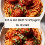 Classic Spaghetti and Meatballs is a hearty Italian-American favorite featuring tender, melt-in-your-mouth meatballs made from a blend of ground beef and pork, simmered in a rich homemade crushed tomato sauce infused with garlic and fresh basil. Served atop perfectly cooked spaghetti and topped with grated Parmesan cheese, this comforting dish makes a satisfying meal for family and friends.