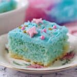 A whimsical Cotton Candy Cake that brings the magical flavor of cotton candy to a moist white cake base, enhanced with cotton candy soda and a light blue tint. Topped with a fluffy, sweet frosting infused with reduced cotton candy soda for a delightful, unique treat perfect for celebrations and fun gatherings.