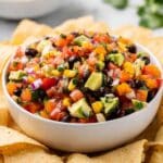 Cowboy Caviar is a vibrant and refreshing no-cook salad featuring a colorful mix of fresh vegetables, beans, and a tangy dressing. Perfect as a side dish or a light snack, this wholesome recipe combines diced tomatoes, corn, black beans, avocados, bell peppers, onions, jalapeño, and fresh herbs, all tossed in a zesty lime and red wine vinegar dressing.