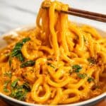 Keywords: udon noodles, gochujang, creamy noodles, Korean noodles, spicy udon, quick dinner, comfort food