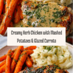 This Creamy Herb Chicken with Mashed Potatoes and Glazed Carrots is a comforting and elegant meal perfect for any night of the week. Tender chicken breasts are smothered in a flavorful herb cream sauce, paired with buttery mashed potatoes and sweet, tender carrots glazed to perfection.
