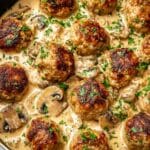 Keywords: chicken meatballs, creamy mushroom sauce, ground chicken recipe, comfort food, easy weeknight dinner, skillet meatballs, mushroom cream sauce
