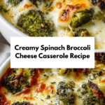 This Creamy Spinach Broccoli Cheese Casserole is a comforting, cheesy baked dish featuring tender broccoli and spinach blended in a rich, creamy cheese sauce with sharp cheddar, mozzarella, and Parmesan. Topped with a golden breadcrumb crust, this casserole is perfect as a hearty side or vegetarian main, offering a warm and satisfying way to enjoy seasonal greens.