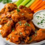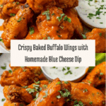 Crispy Baked Buffalo Wings are a delicious and healthier alternative to traditional fried wings. Coated in a tangy, buttery hot sauce and served with creamy blue cheese dip, they make the perfect appetizer or game day snack.