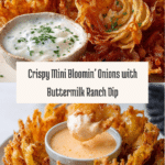 Crispy Mini Bloomin’ Onions are a fun and flavorful appetizer featuring sweet onions cut to resemble a flower, battered in seasoned flour and breadcrumbs, then deep-fried to golden perfection. Paired with a creamy, tangy buttermilk ranch dip, this dish is perfect for sharing or serving as a crowd-pleasing snack at any gathering.
