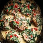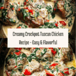 This Crockpot Tuscan Chicken recipe features tender, juicy chicken thighs simmered in a rich and creamy sauce made with garlic, heavy cream, Parmesan cheese, sun-dried tomatoes, and spinach. It’s a comforting, flavorful meal perfect for busy days when you want a delicious homemade dinner with minimal effort. The slow-cooking method ensures the chicken is melt-in-your-mouth tender, infused with Italian herbs and a touch of spice from red chili flakes.