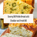 Keywords: Dill Pickle Bread, savory quick bread, cheddar cheese bread, dill and pickle recipe, homemade bread, snack bread