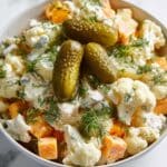 A refreshing no-cook Dill Pickle Salad featuring crisp cauliflower florets, tangy pickle juice, creamy cheddar cheese, and a flavorful dill-infused dressing. This salad is perfect as a light side or snack, combining zesty flavors and crunchy textures in a simple, quick-to-prepare dish.