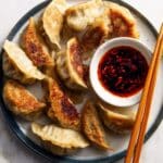 Keywords: vegetarian dumplings, tofu dumplings, chile crisp dumplings, Chinese dumplings, pan-fried dumplings, steam-fried dumplings