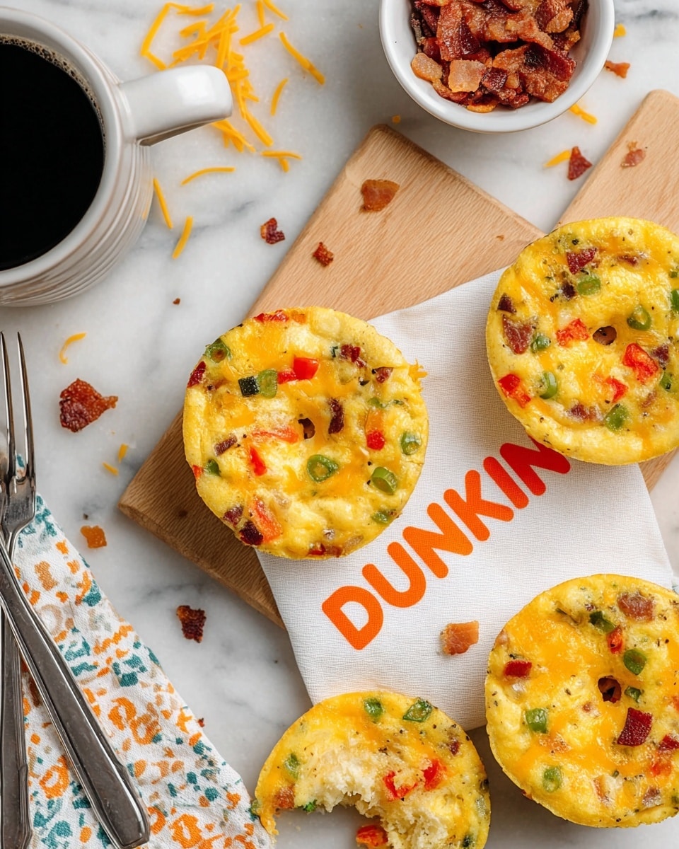 These Dunkin Omelet Bites are a delicious, bite-sized breakfast option featuring eggs, diced vegetables, crispy bacon, and melted cheddar cheese baked to golden perfection. Perfect for meal prep or a quick breakfast on the go.