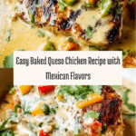 Keywords: baked queso chicken, cheesy chicken recipe, easy chicken dinner, Mexican chicken recipe, weeknight chicken, queso sauce chicken, oven-baked chicken