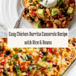 Keywords: chicken burrito casserole, baked chicken casserole, easy chicken dinner, southwestern casserole, Mexican casserole, chicken and rice casserole