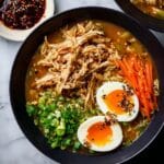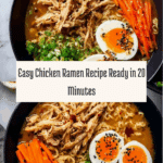 This Easy Chicken Ramen recipe delivers a flavorful, comforting bowl of homemade ramen ready in just 20 minutes. Using shredded cooked chicken, fragrant spices, and instant noodles simmered in a savory broth, it’s a perfect quick meal packed with tasty toppings like spring onions, hard-boiled eggs, carrot strips, and optional chili oil for an added kick.
