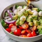 A refreshing and easy-to-make cucumber mozzarella salad featuring ripe avocado, cherry tomatoes, fresh basil, and a simple balsamic vinaigrette dressing. Perfect as a light lunch or a side dish, this salad combines fresh ingredients with creamy mozzarella for a delightful flavor and texture balance.