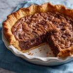 - Assemble and Bake the Pie: Pour the filling mixture evenly over the walnut and chocolate chip layer in the pie crust. Bake for 40 to 45 minutes, until the edges are lightly golden and the filling is set but still has a slight jiggle in the center; it will firm up as it cools. Remove from oven and allow the pie to cool completely before slicing to ensure clean, custard-like slices.