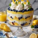 This Easy Lemon Blueberry Trifle is a delightful layered dessert that combines tangy lemon flavors with fresh blueberries and creamy filling. Perfect for gatherings or a simple treat, it’s both beautiful and delicious. With layers of lemon pound cake, lemon curd, blueberry preserves, and a light lemon cheesecake filling, this trifle is sure to impress.