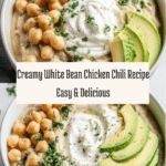 Keywords: white bean chili, chicken chili, easy chili recipe, creamy chili, weeknight dinner, comfort food