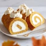 PrintFlourless Pumpkin Spice Roll Cake with Cream Cheese Filling Recipe