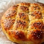 Fluffy Turkish Bread, also known as Pide, is a soft and airy flatbread perfect for dipping or accompanying your favorite meals. Its light texture pairs wonderfully with spreads, soups, or grilled dishes, making it a versatile addition to any table.