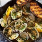 Keywords: garlic butter clams, manila clams recipe, seafood skillet, garlic clam recipe, quick seafood dish