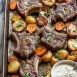 PrintGarlic Herb Lamb Chops with Roasted Root Veggie Medley Recipe