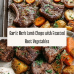 Keywords: garlic herb lamb chops, roasted root vegetables, easy lamb recipe, oven-roasted lamb, rosemary thyme lamb
