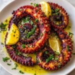 This grilled octopus recipe features tender, flavorful octopus simmered and then charred to perfection on the grill. Marinated with lemon, garlic, oregano, and a hint of red pepper flakes, each bite offers a smoky, citrusy taste ideal for a delectable appetizer or main course.