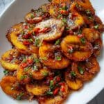 Enjoy a simple yet flavorful Haitian-style dish featuring boiled plantains infused with a savory garlic and onion sauté. This comforting side is easy to prepare and pairs beautifully with a variety of main courses.