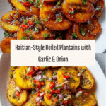Enjoy a comforting Haitian-style boiled plantains dish enhanced with a flavorful garlic and onion sauté. This simple yet delicious recipe highlights tender boiled plantains paired with aromatic garlic and onions sautéed in olive oil for a perfect side or snack.