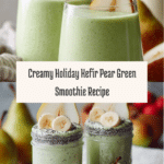 A refreshing and nutritious Holiday Kefir Pear Green Smoothie combining creamy kefir, sweet pear, and vibrant spinach with warming spices like cinnamon and ginger, perfect for a healthy start to your day or a revitalizing snack.